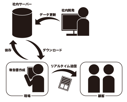 これにより、必要に応じて新規報告書の作成、項目数の増減や追加写真など、全てを自社で作成可能です。
