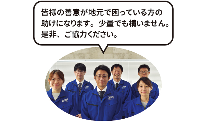 弊社はフードバンクふじのくにに参加いたしました。お住いの皆様と協力して生活困窮者の方たちへ食料をお届けしたく存じます。