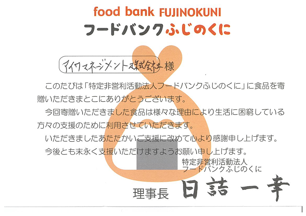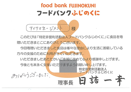 弊社が参加・協力させていただいている「フードバンクふじのくに」のホームページに寄付協力の記事が掲載されました。