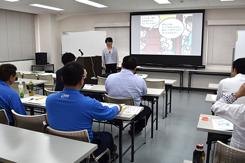 今回は、認知症キャラバンメイトの田中みゆき氏を講師にお招きし、「認知症サポーター養成講座」を開き、社員の認知症への知識を深めました。