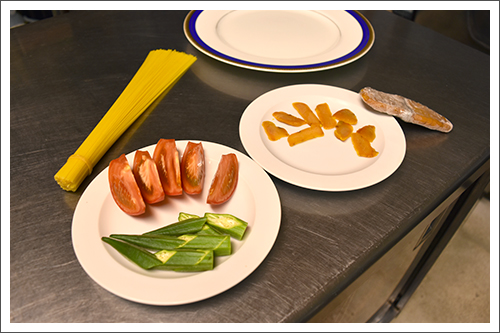 第五回「カラスミとオクラとトマトの冷製パスタ」