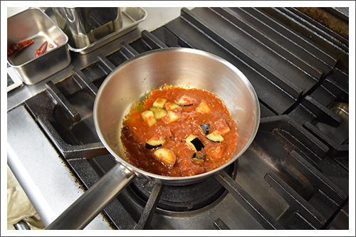 オリーブオイル20cc、輪切りトウガラシ少々を弱火にかける。