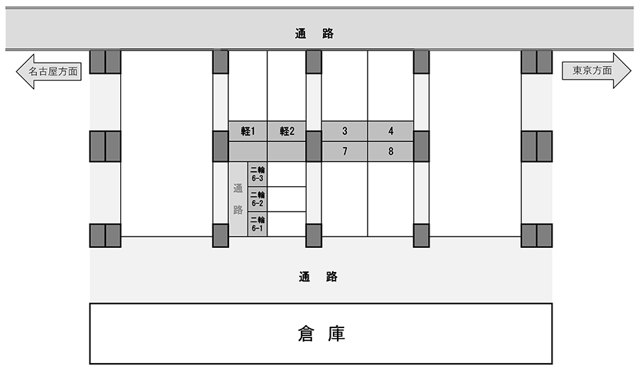 | 賃 料 | 普通 15,400円(税抜価格14,000円) 軽 13,200円(税抜価格12,000円) 自動二輪車 3,300円(税抜価格3,000円) |