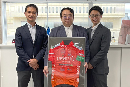 当社は富士市での区画整理等の仕事をさせていただいており、その関係でユニフォームスポンサーとしてスポーツ振興のためにバックアップしている 「レバンテフジ静岡」は、静岡県富士市を中心に活動する自転車ロードレースのプロチームです。当社はユニフォームスポンサーとして活動を支えています。