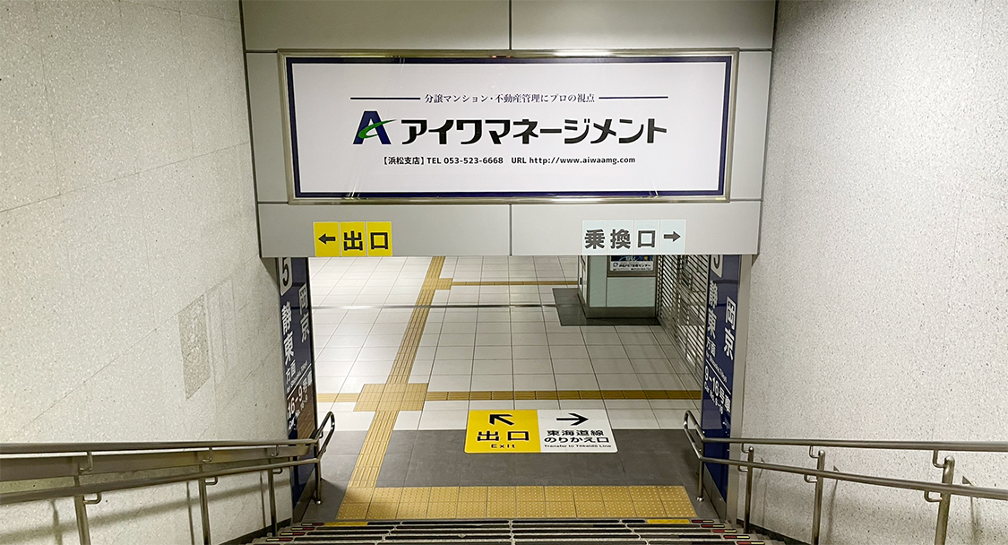 JR浜松駅の新幹線通路に弊社の看板をつけました。是非お問い合わせください。