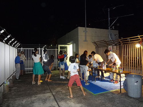 Kマンション屋上を開放しての花火見物会も恒例となりました。