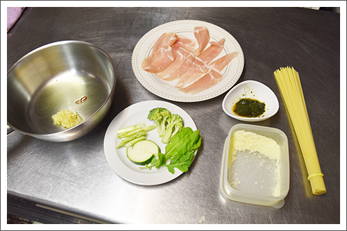 第十三回「グリーン野菜のバジルソース生ハム添え」