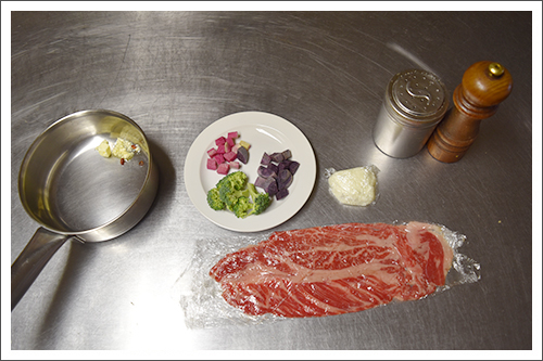 伸ばした牛ロースに下茹でした野菜を巻き、